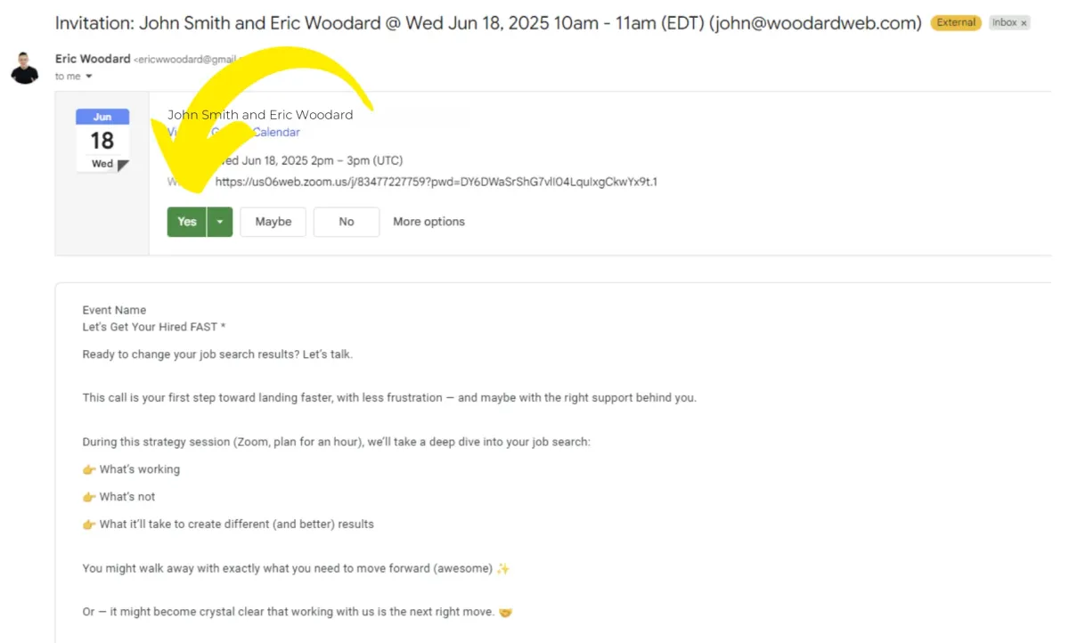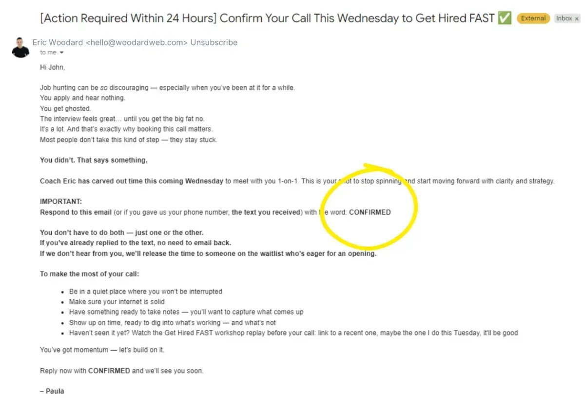 Step 3: 24 Hours Before Your Call You'll Receive This Email (Or Text)